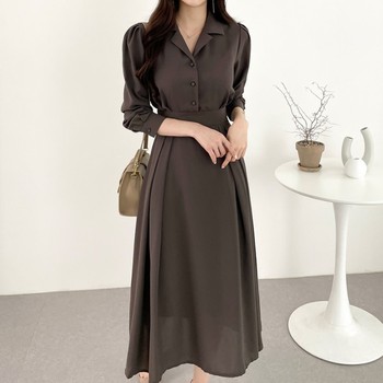 Vestido de una pieza de manga larga con una hilera de botones para mujer, moda coreana
