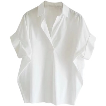 Blusa holgada de algodón de estilo coreano para oficina, camisa de manga de murciélago para mujer, color blanco
