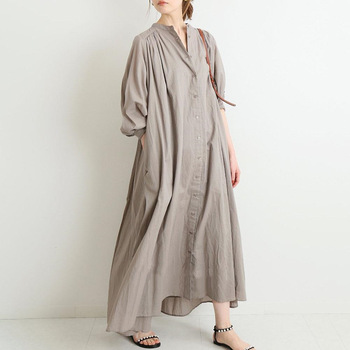 Vestido holgado de lino con manga de burbuja para mujer, ropa de estilo Simple japonés, talla única, 2022
