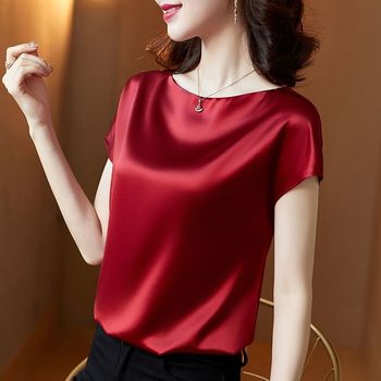 Blusa de satén de talla grande para verano, Camisa lisa informal para mujer